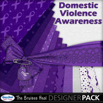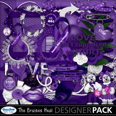 A domestic violence awareness kit containing DVA ribbons, buttons, wristbands, word art, and pins. Also includes a variety of flowers, frames, bows, ribbons, and other standard scraping elements all in purple and white. This is a kit for a cause near and dear to my heart.