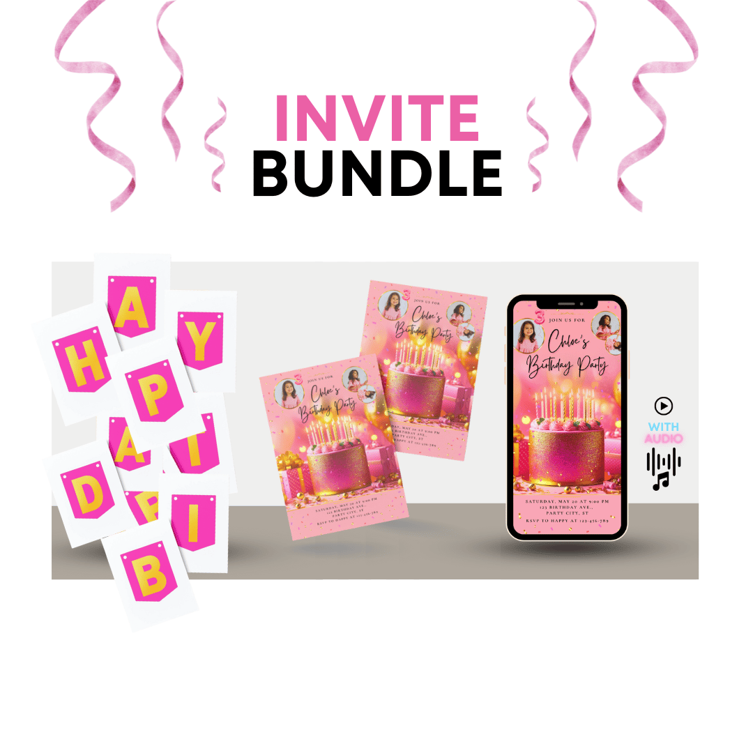 Pink & Gold Birthday Invitation – Combo Pack