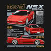 Witness the engineering revolution with this Honda/Acura NSX tribute art, celebrating the aluminum masterpiece that redefined supercars. This design focuses on the NSX's semi-monocoque chassis, 270HP 3.0L C30A V6, and groundbreaking F-Matic transmission – the car that humbled Europe in the 1990s.