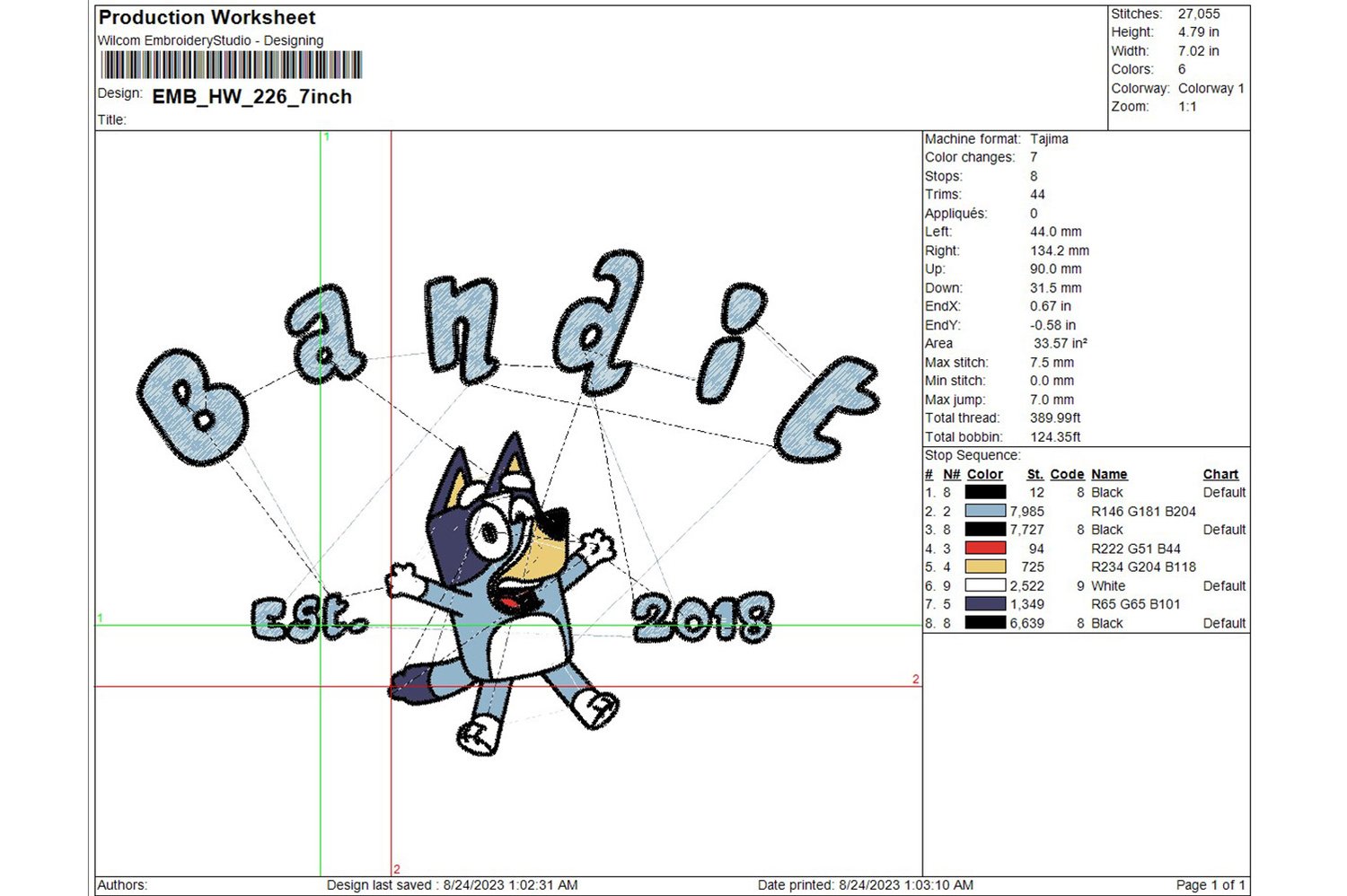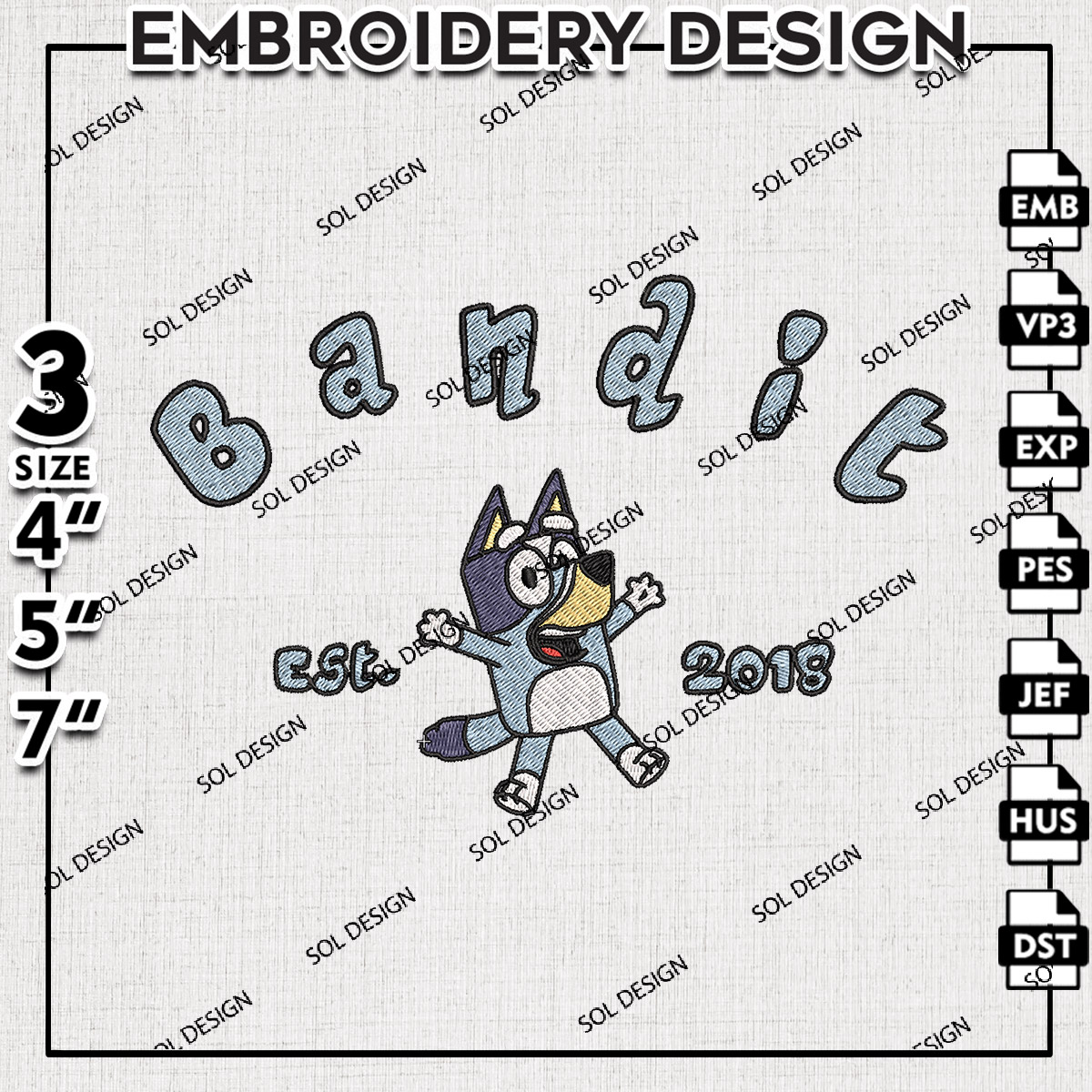 Bandit Heeler Bluey Squad Est Embroidery Designs, Bluey Family Machine Embroidery Files, Cartoon Character embroidery designs, Bluey Disney, Digital Download
