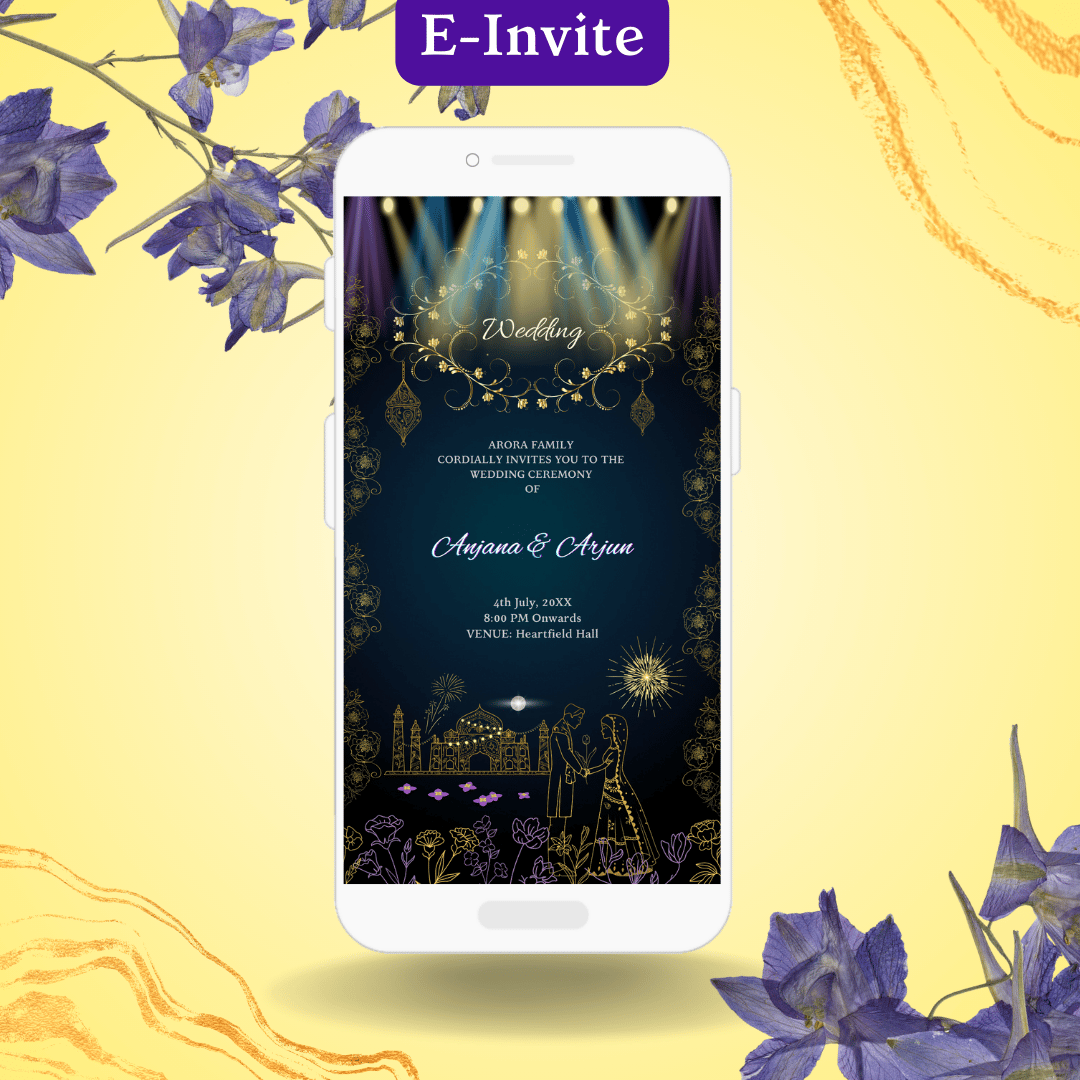 W4 Golden Floral Indian Wedding Digital Invitation