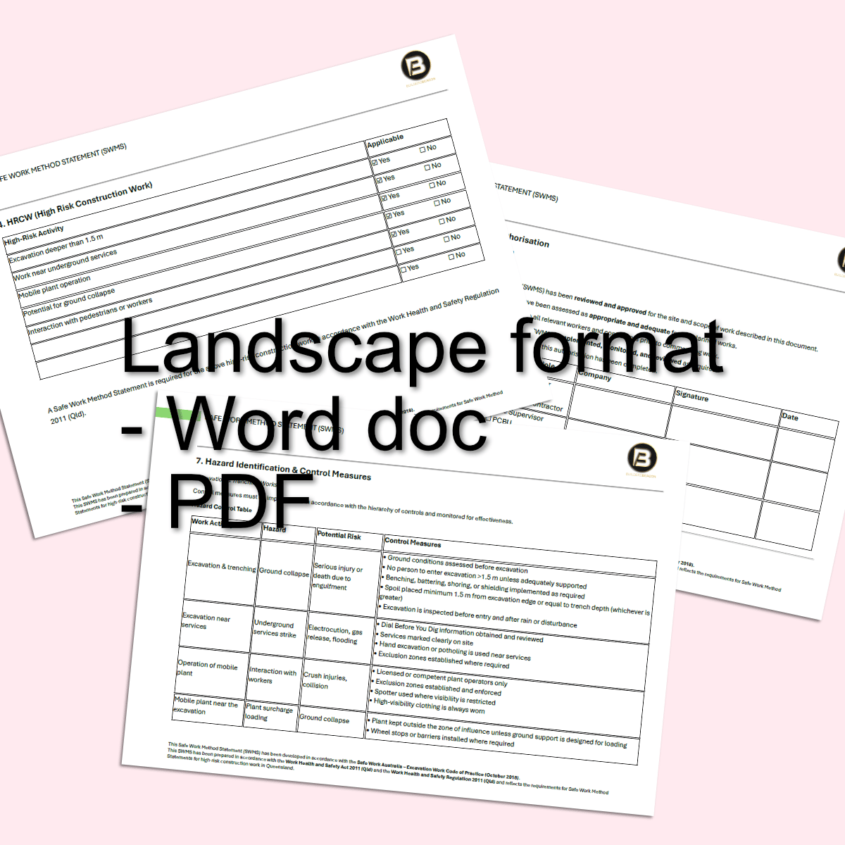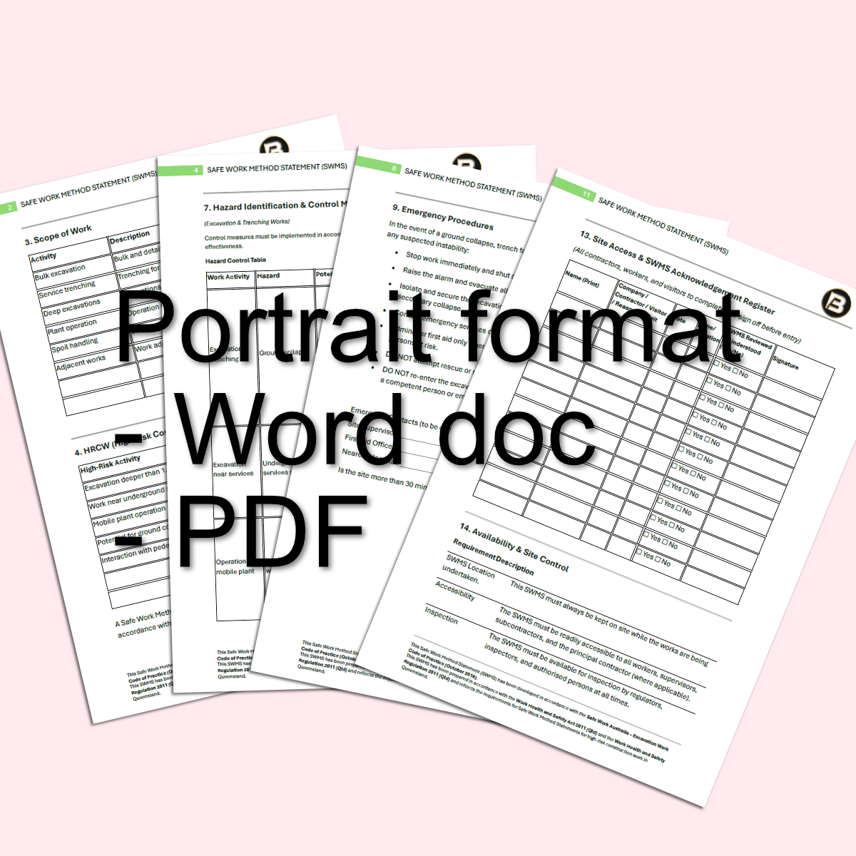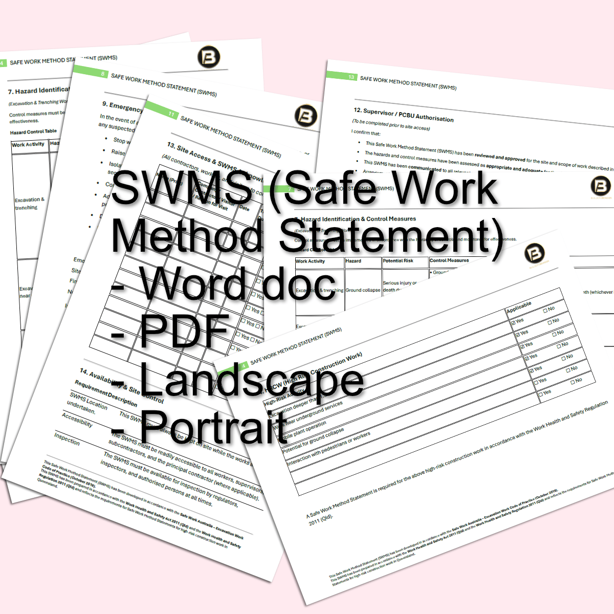 This Safe Work Method Statement (SWMS) has been developed for excavation and trenching works undertaken on residential and light civil construction sites across Queensland.