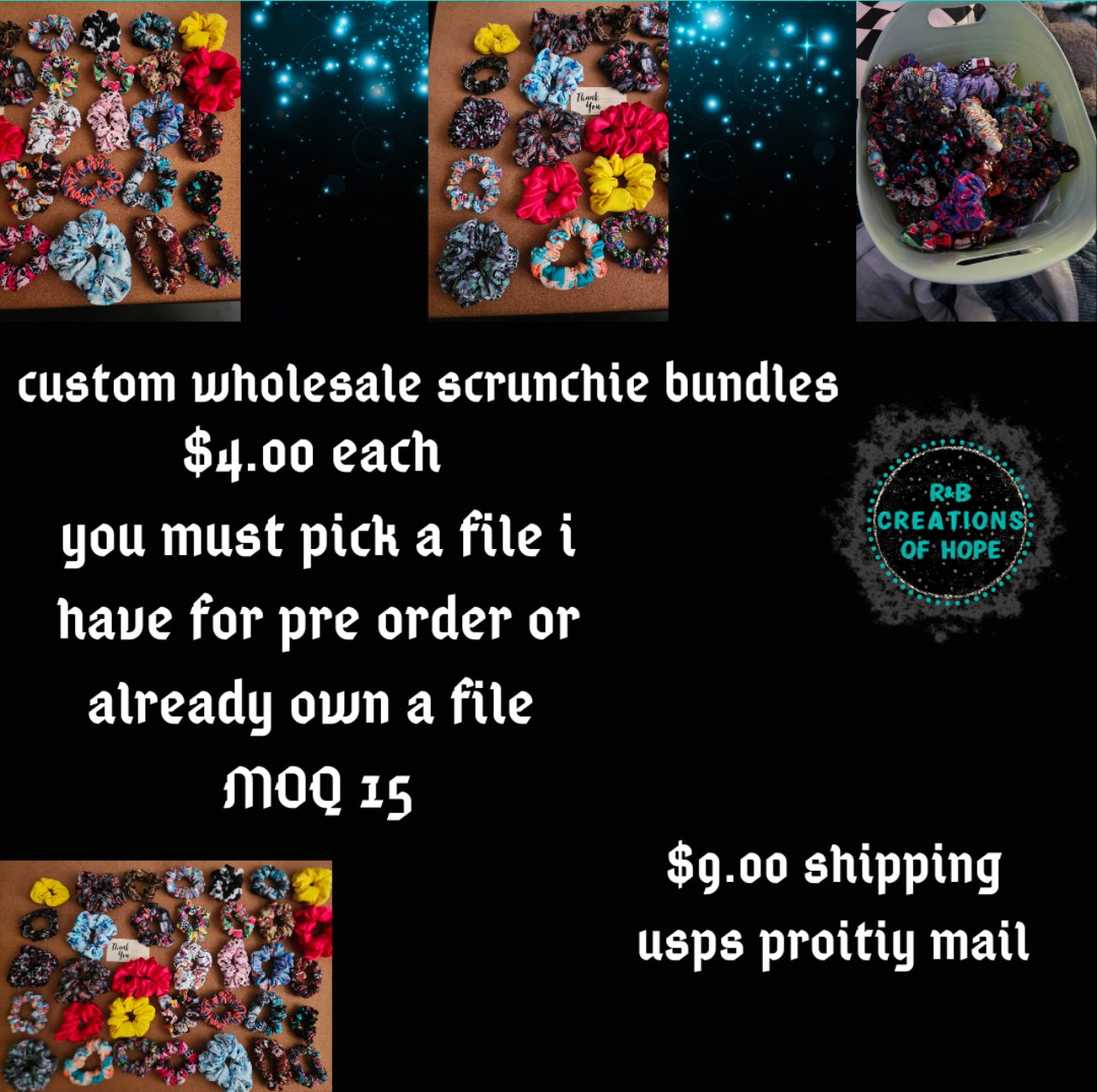 the scrunchies are $4.00 each MOQ 15 so the set price on this listing is for variants of 15