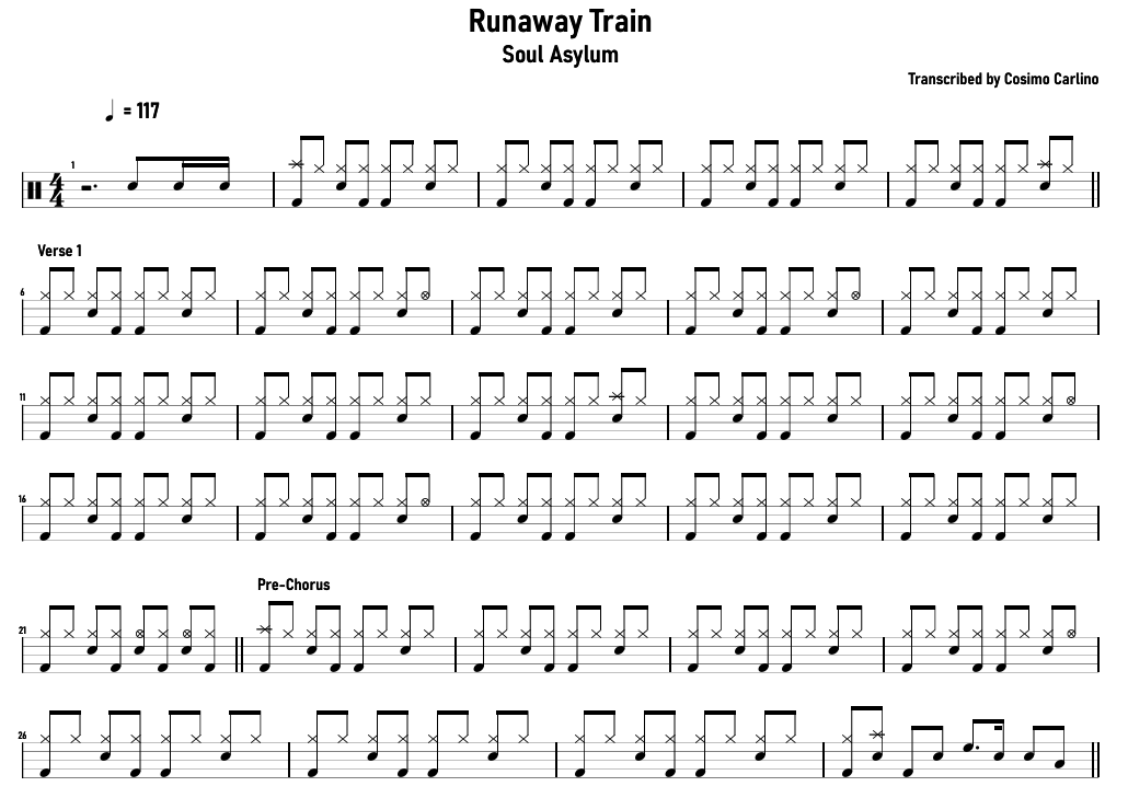 Runaway Train - Soul Asylum Full Drum Transcription in PDF