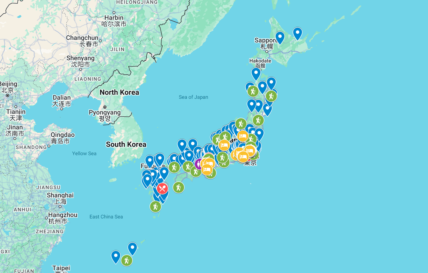 NB: Le Mappe di Google Maps contengono centinaia di luoghi in tutto il Giappone! Le location inserite sono organizzate in: