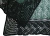 At one point I fell head-over-heels in love with vine lace stitches. This shawl has the three that I found. One on each end of center, a different one in the middle, and a lovely vine border around the outside. I started with the two hanks of green yarn. I soon discovered that that would not be enough, and that there was also no way that I could find the same dye lot again, seeing as how I bought it when I was out of town. I did have a hank of the lovely black, though, so used that for the applied border. I started knitting really fast as I approached the final corner… and ran out of yarn. I did know where I got the black, so I contacted the store. Yes! She had one more hank of that dye lot. Hooray!