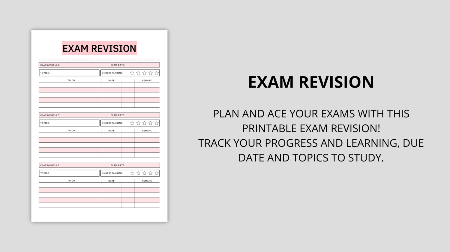 - Exam Revision Sheets – review key topics and prepare effectively for tests