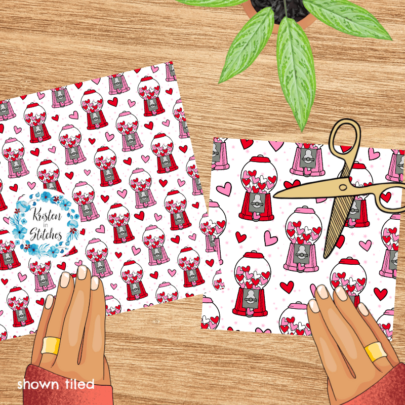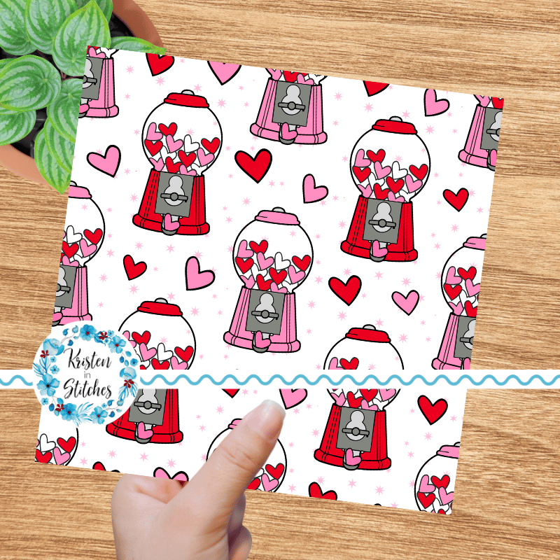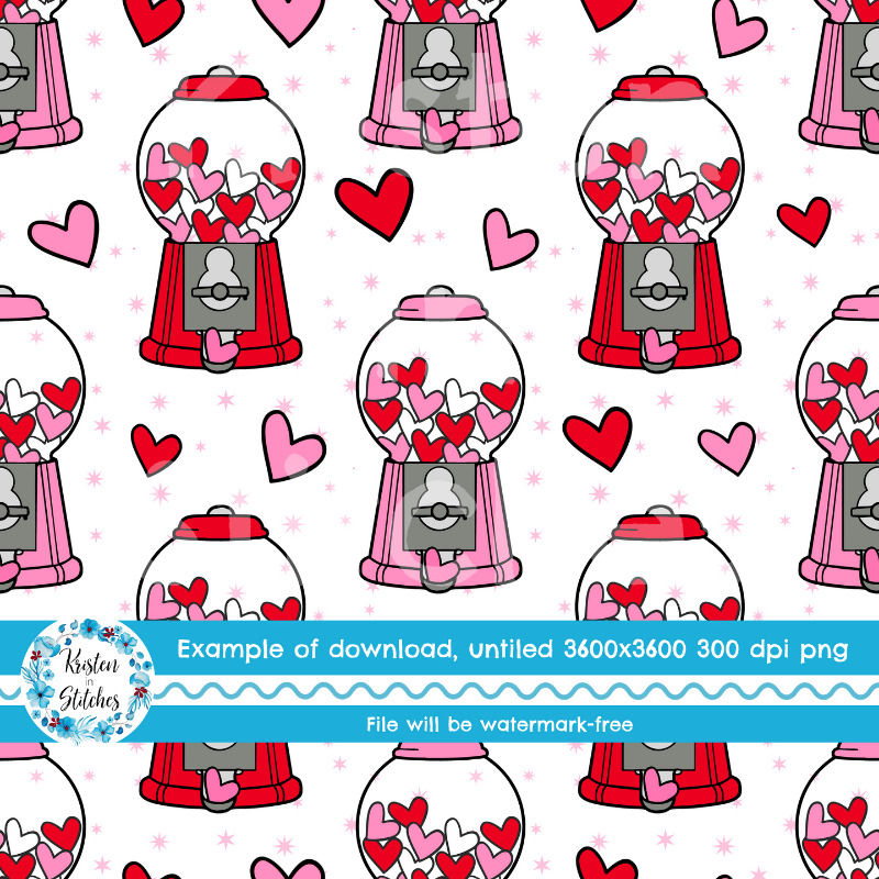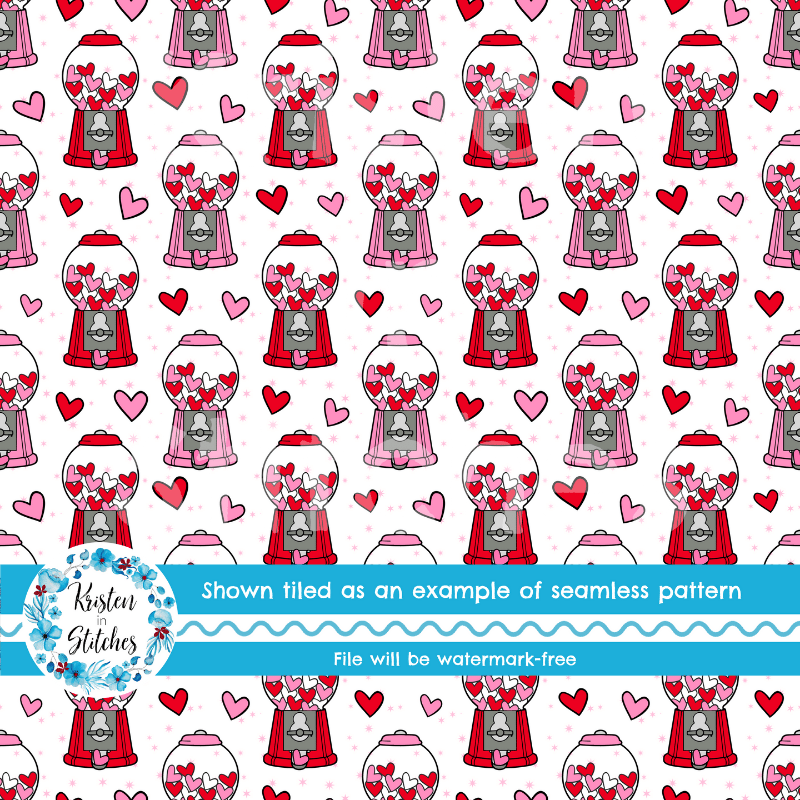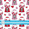 Valentine Hearts Bubblegum Machines Seamless Pattern