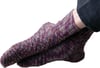 Pattern is written for three sizes. Cuff stitch counts are 54, 66, and 78 sts. Socks are knit from the toe up, and have a short-row heel.