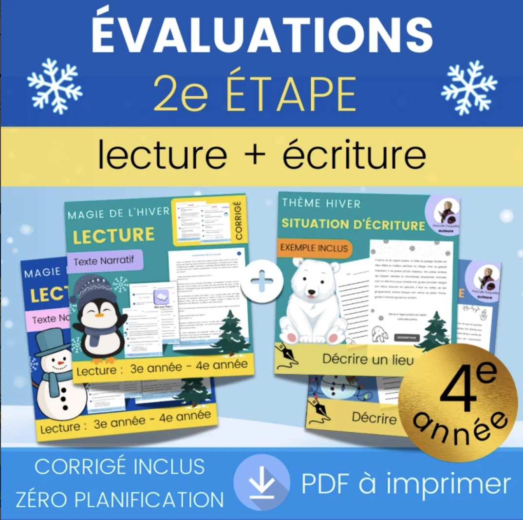 Conçu pour les évaluations de janvier, cet ensemble clé en main permet d’évaluer efficacement la lecture ET l’écriture en 4e année, sans planification supplémentaire.