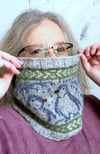 This is a pattern for a cowl/neck warmer worked from the bottom up, in the round, and using the stranded colourwork technique.