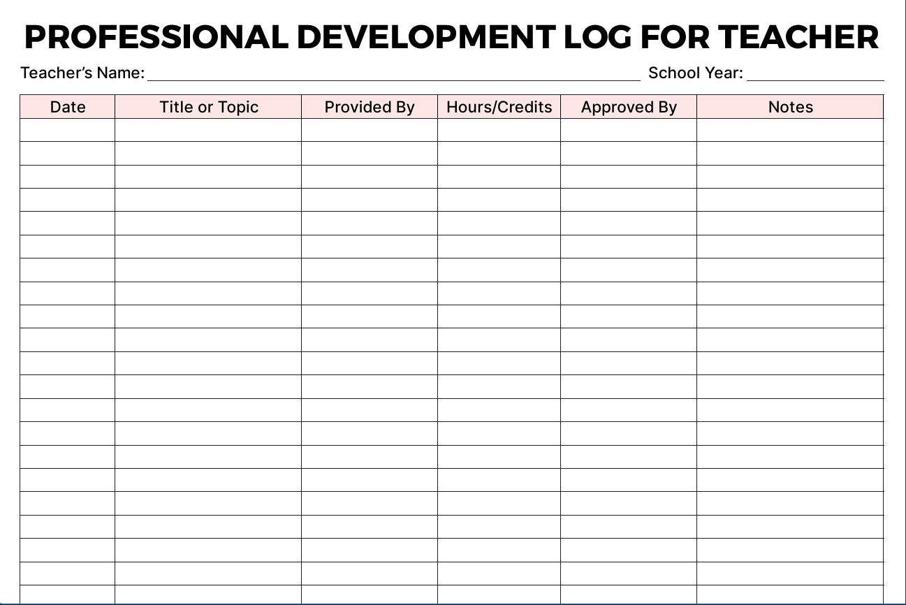 Professional Development Log for Teachers — Printable PD Tracking Template