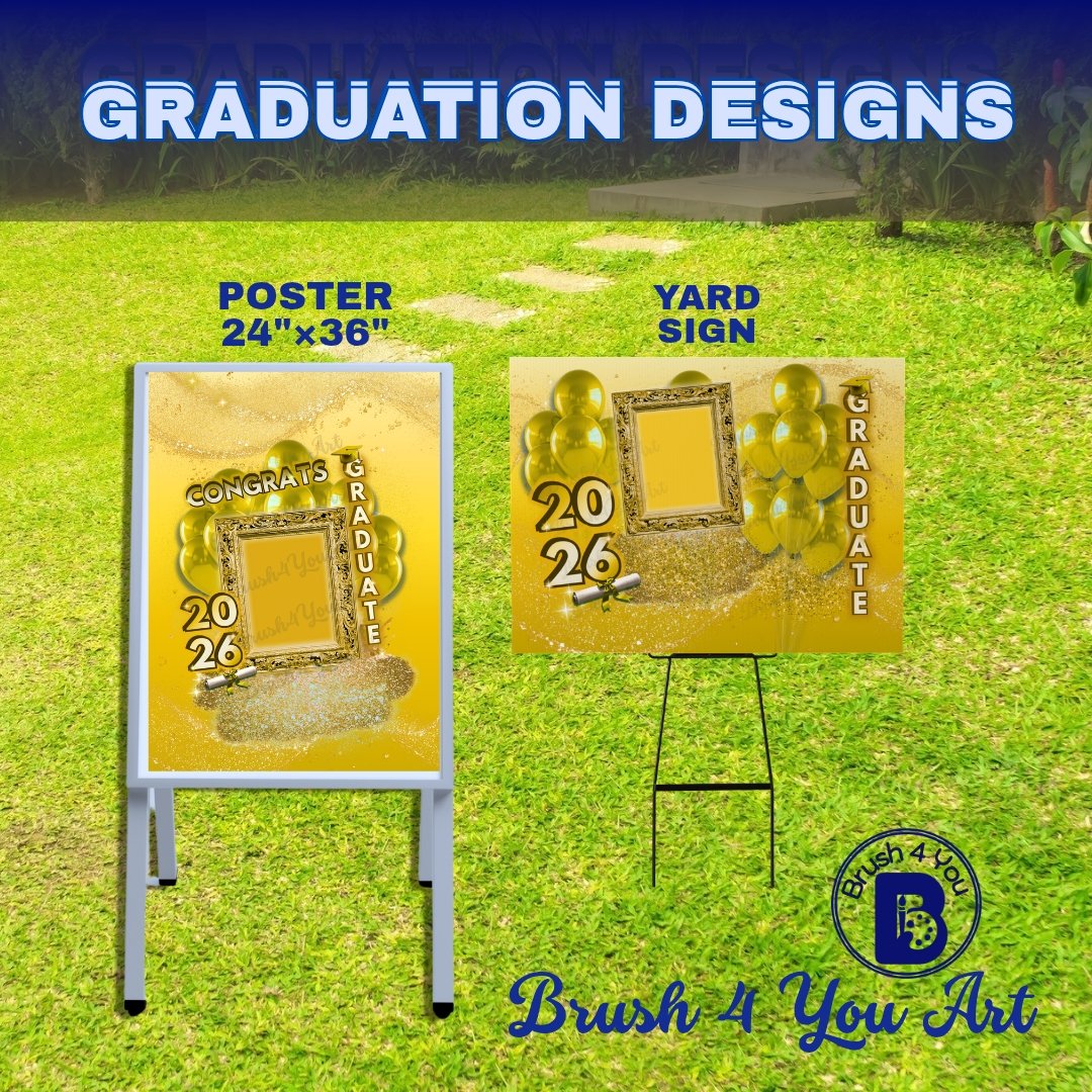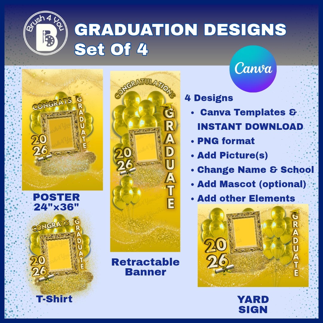 Gold Congrats Graduate Designs- Poster, Yard Sign, RetractableBanner & T-Shirt (Transparent PNG) Digital Instant Download & Canva Template