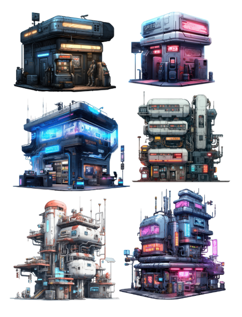 Cyberpunk and anime ephemera are all the rage right now and this book features elements including grunge, factory, industrial, garage, alleyway, hacker, girls and guys and computers.