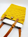 This crochet laptop bag is fairly easy to make and it has a special feature – it’s lined with EMF defense silver fabric. The bag is made with cotton yarn which makes it really sturdy. The bag is meant for 14″ laptop.