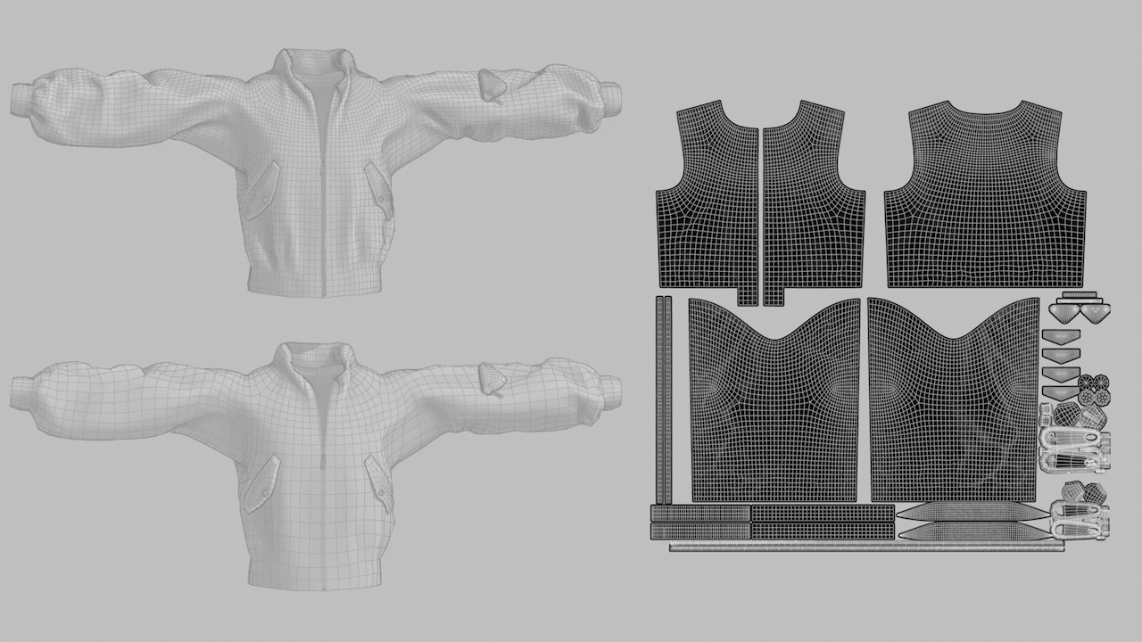 - Dynamic Zipper Blendshape – Seamlessly animate between fully zipped and half-zipped poses with a single blendshape, giving you effortless control over styling and silhouette.
