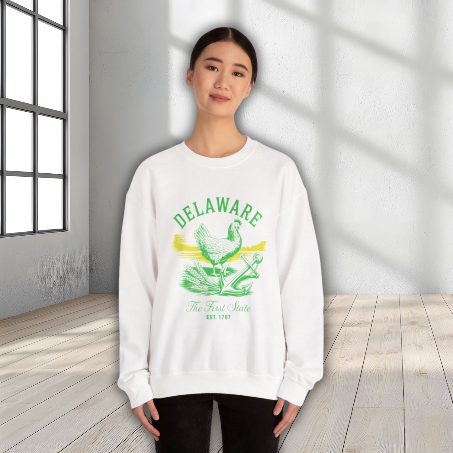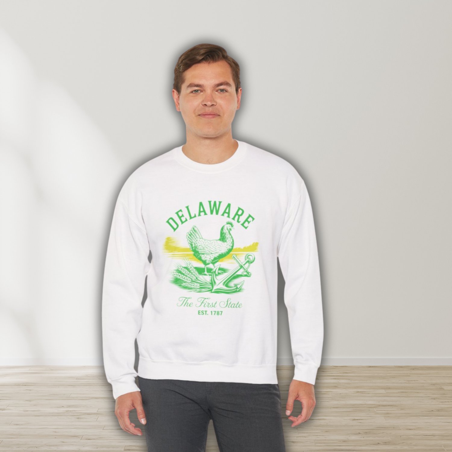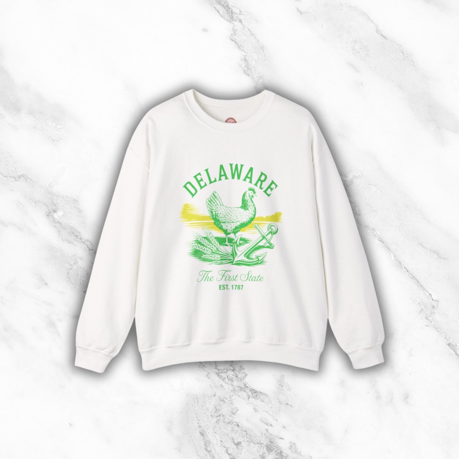 Delaware State Pride Unisex Crewneck Sweatshirt – Cozy Vintage-Style Gift for Delawareans, Casual Cold Weather Apparel