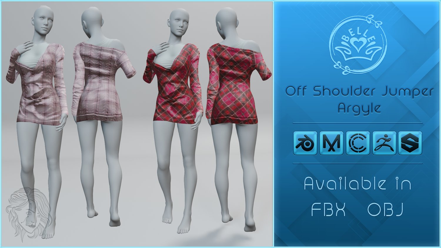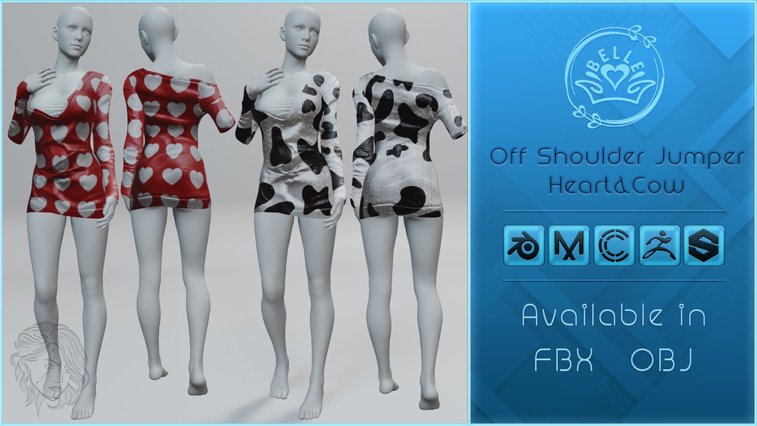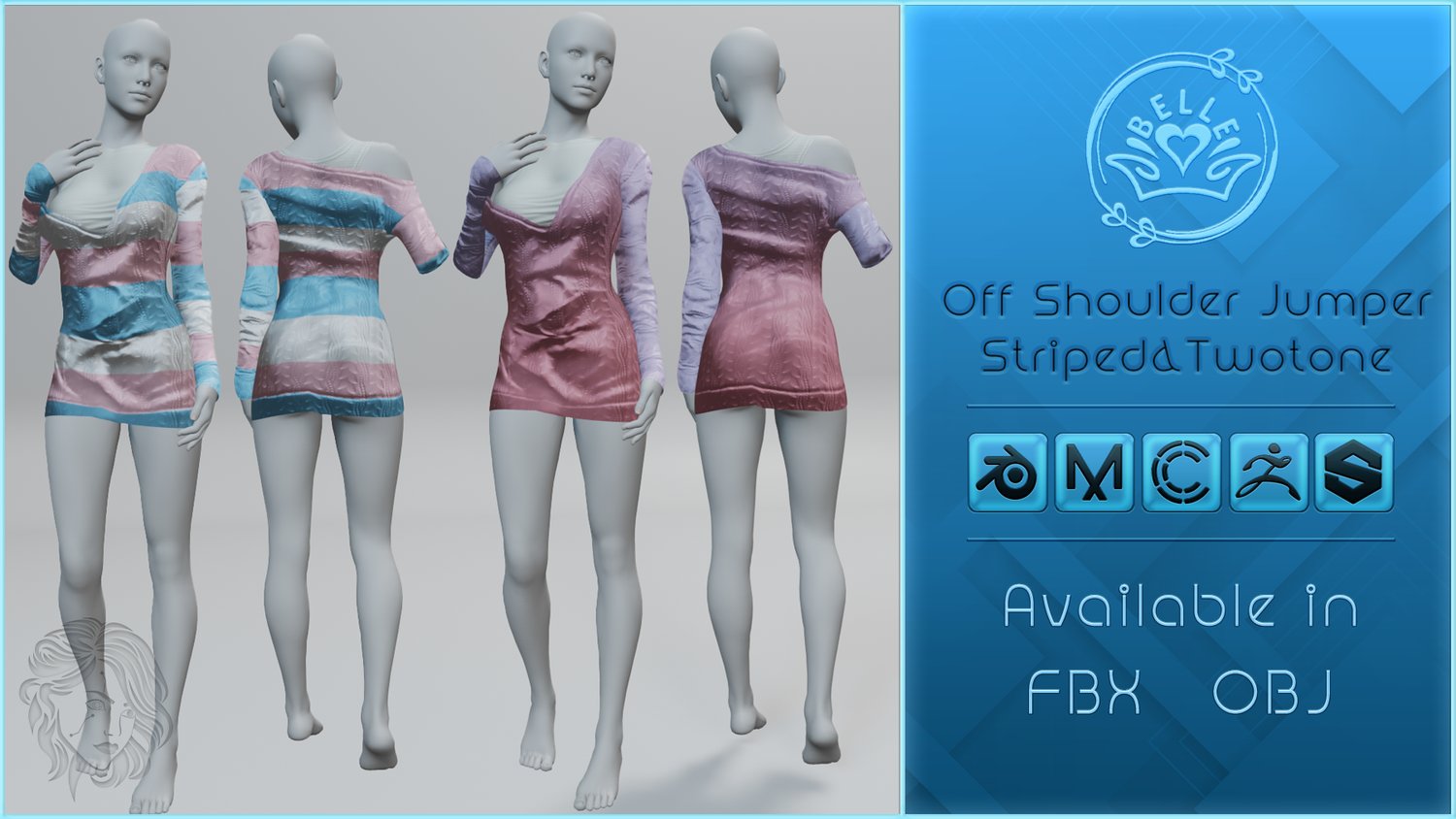 An off-the-shoulder jumper with a Crop top Underneath that is a trendy and fashionable garment. combines comfort with style. Enjoy 8 different Diffuse Textures