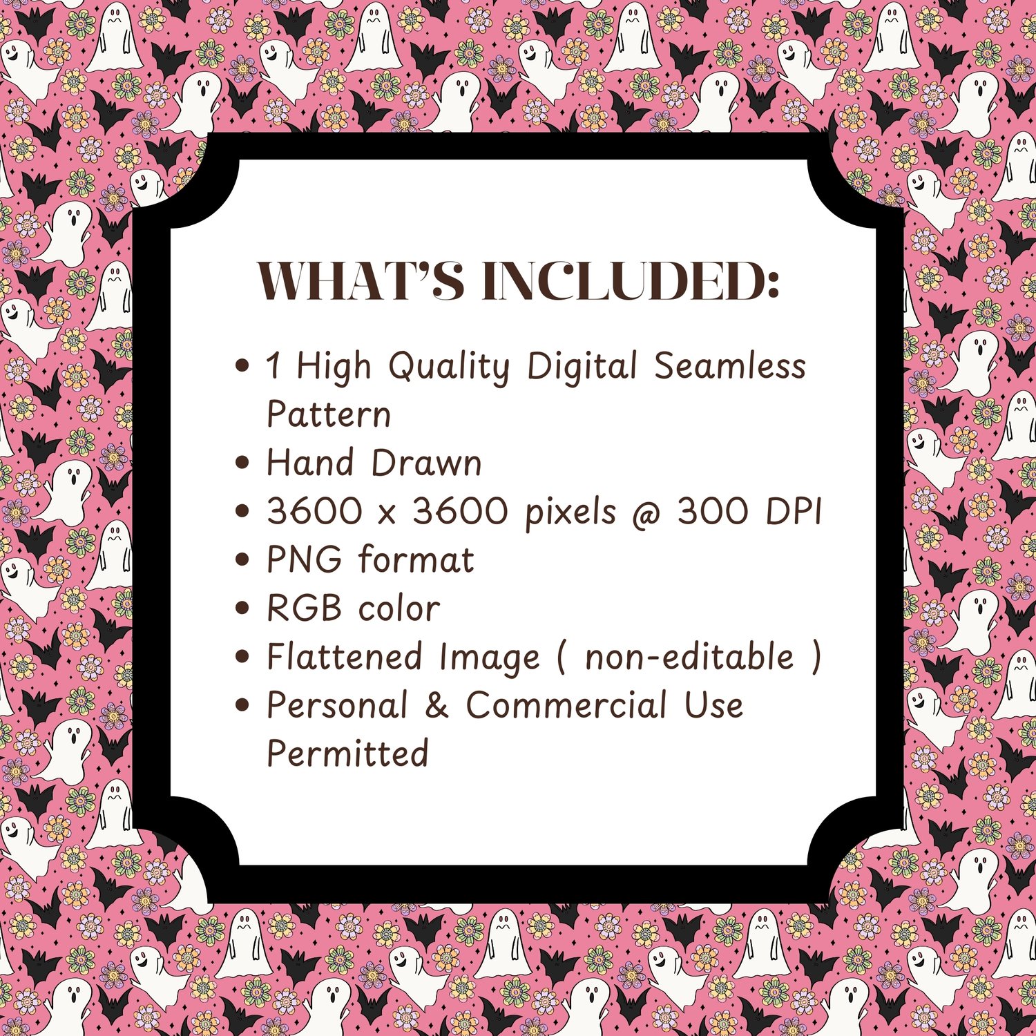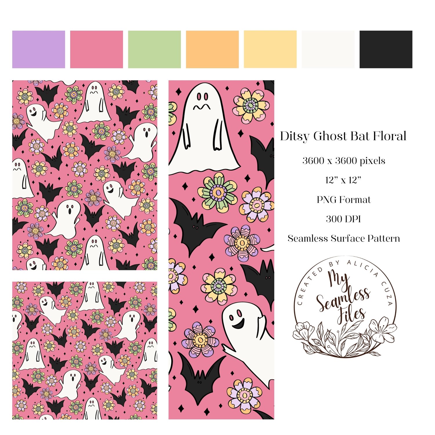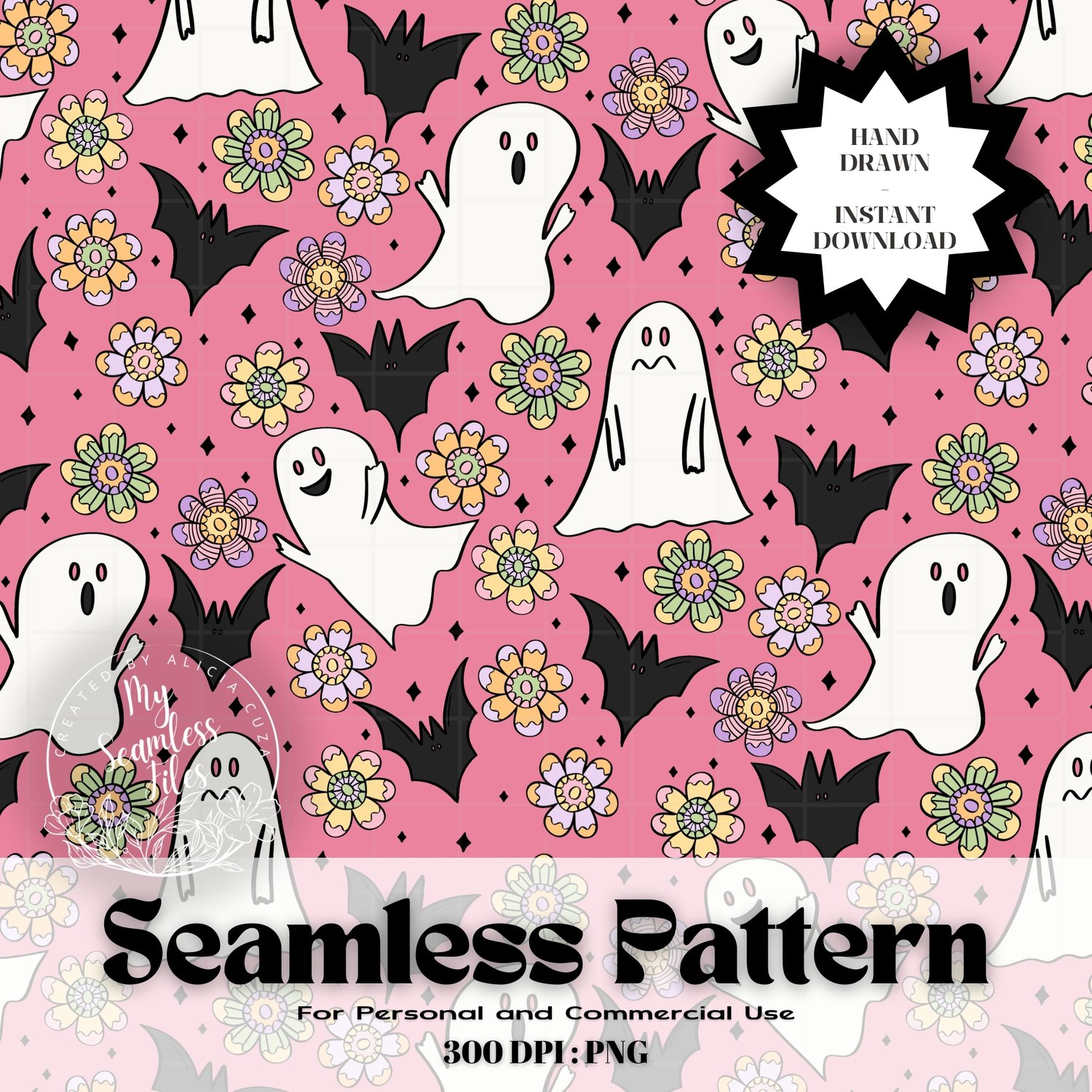 INSTANT DOWNLOAD - PINK HALLOWEEN DITSY GHOST BAT FLOWER SEAMLESS PATTERN