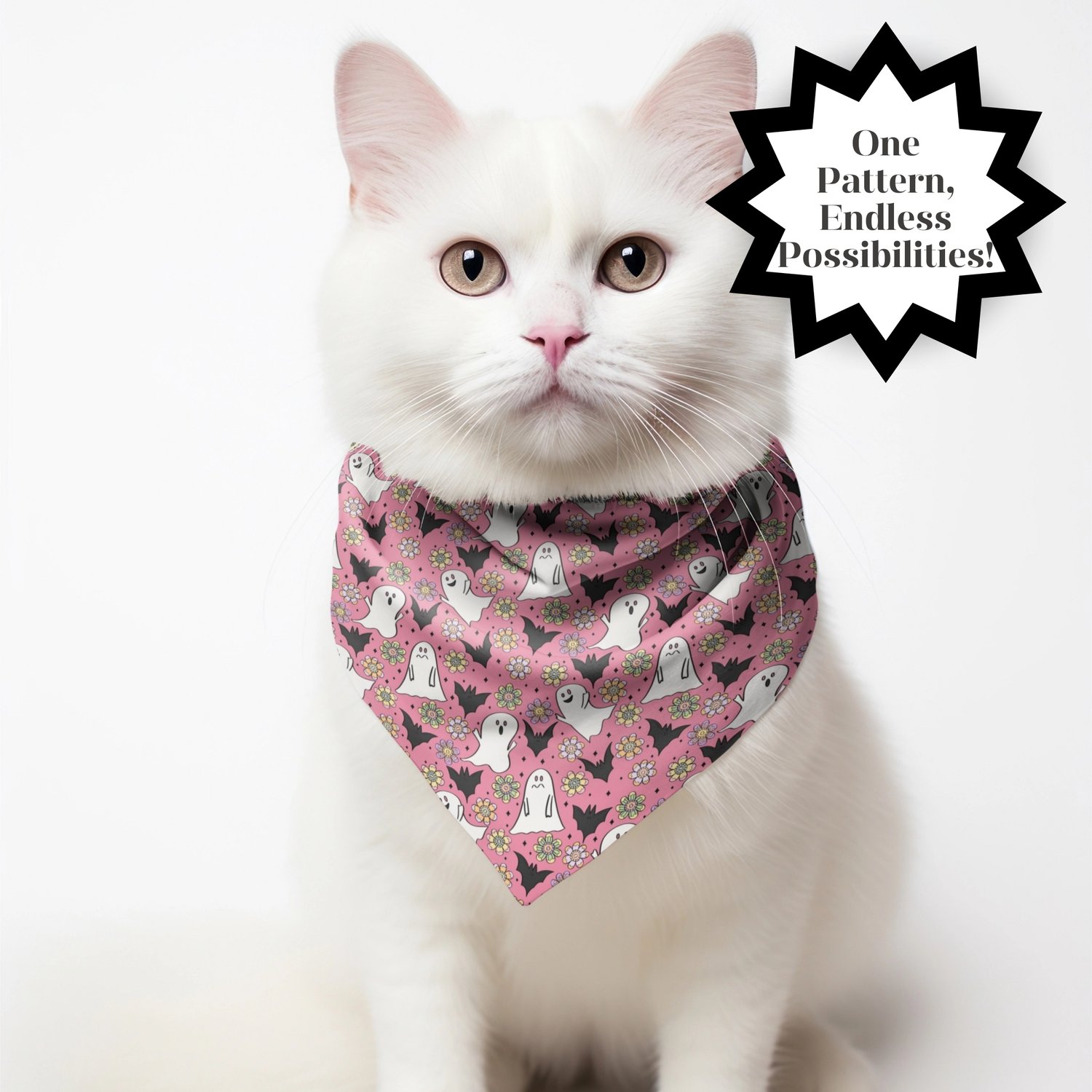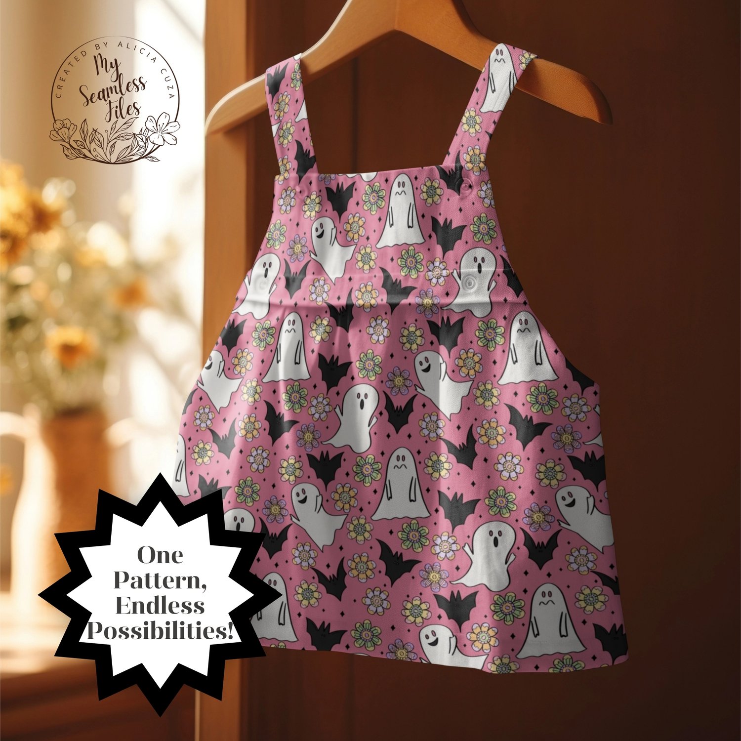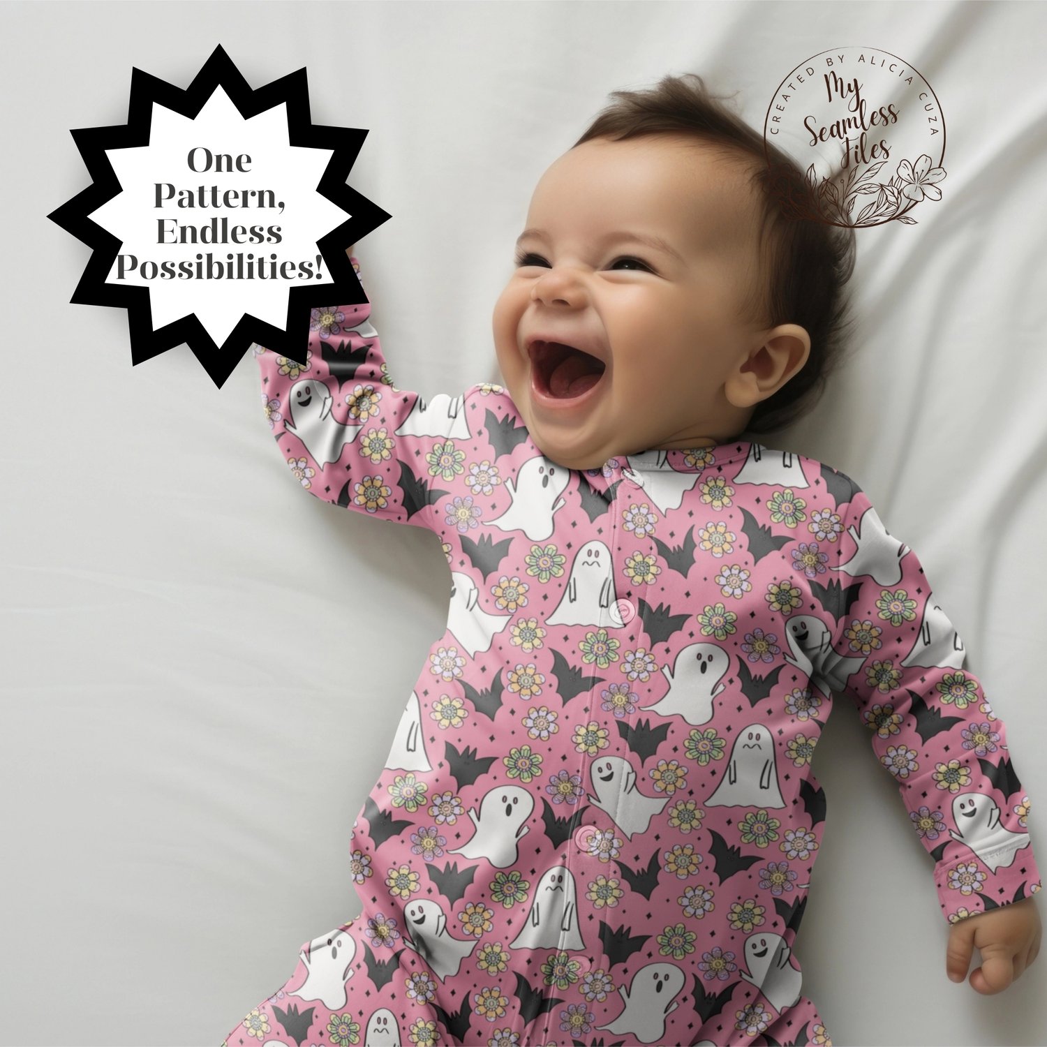 INSTANT DOWNLOAD - PINK HALLOWEEN DITSY GHOST BAT FLOWER SEAMLESS PATTERN
