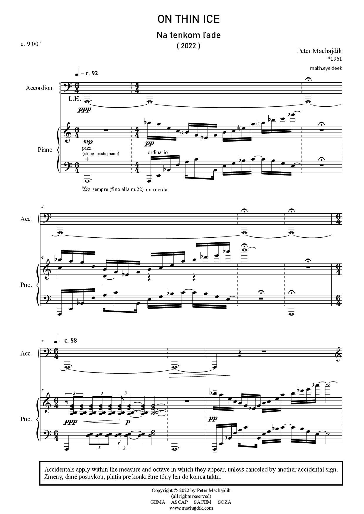 Peter Machajdík: ON THIN ICE for accordion and piano (Digital Sheet Music) [score and parts]