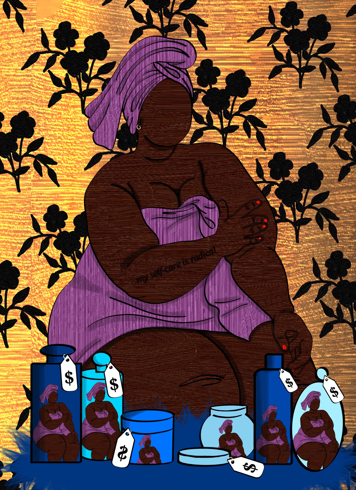 A .PNG print-ready digital download of 'self-care corruption' by Mercy Thokozane Minah.