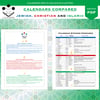 The Christian (Gregorian) calendar is used world-wide as the universal calendar for business, much like English is a universal business language. The Jewish and Islamic calendars are still in use today by members of those faiths and in certain countries. As a result, calendars combining one of these with the Gregorian calendar are readily available, but this calendar combines all three so we can all use the same one.