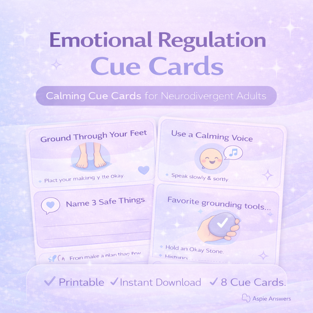 Perfect for autistic teens/adults, ADHD brains, anxiety support, sensory overload, and anyone who benefits from step-by-step reminders in hard moments.