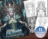 11 Elf Queens Coloring Book, Adults + kids- Download - Grayscale Coloring Page - Gift, Printable PDF, Elven women, Queens, Throne, Beauty
