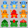 This pattern is for ALL the Monster Collection #1 quilt blocks including, Water, Fighting, Canon, Fire, Flaming, Blazing, Leaf, Flower and Blooming.