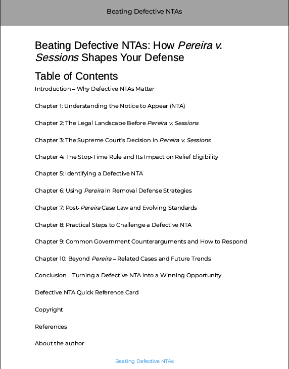 In "Beating Defective NTAs," discover how the landmark Supreme Court ruling in Pereira v. Sessions reshaped immigration law by mandating that Notices to Appear must contain essential details like the time and place of hearings. This critical change empowers respondents to challenge in absentia removal orders and assert their rights effectively. Navigate the complexities of immigration proceedings and learn how to leverage procedural defects in your favor.