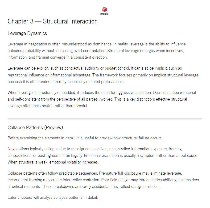 They allow you to recognize where leverage shifts, where framing destabilizes, and where incentives misalign — before negotiation collapse occurs.