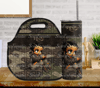 Green Brown Tan Camouflage and Gold Betty Boop FND 20oz Skinny Tumbler Design and Lunch Tote PNG Design Bundle, Sublimation