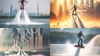 Flyboard master performance great moves in China, captured with a telephoto lens to focus on the interaction with nature.