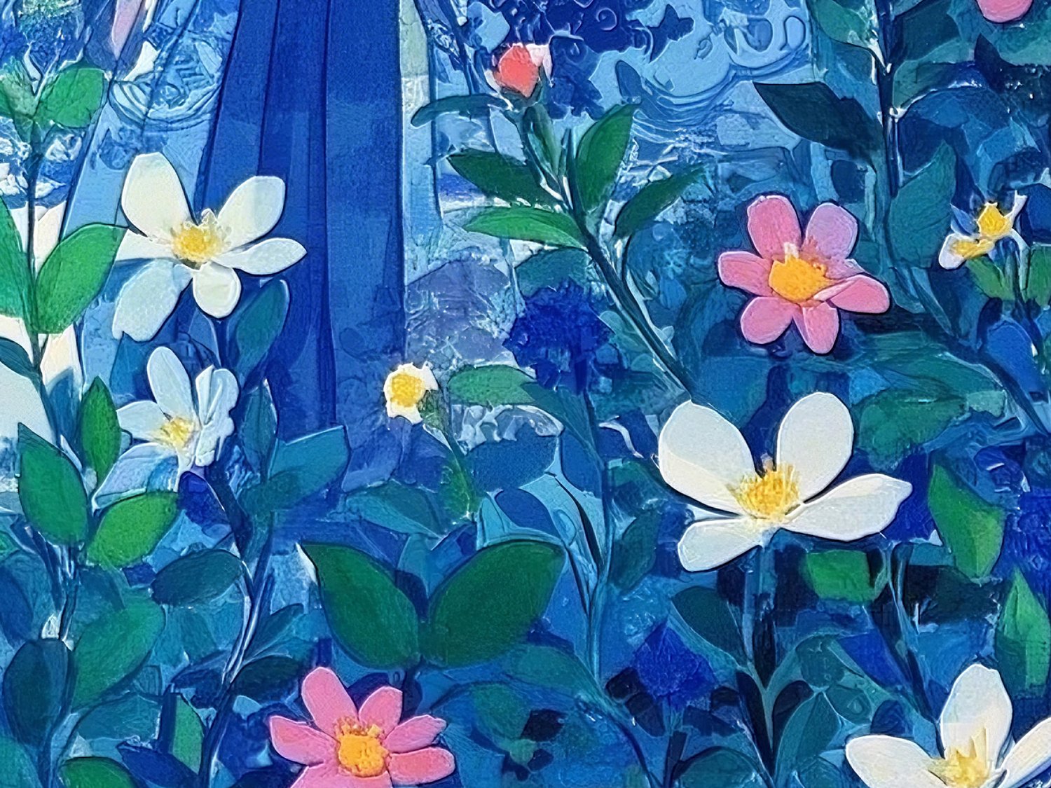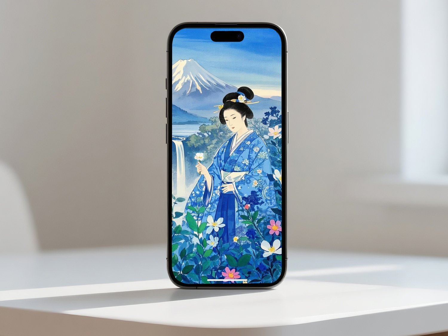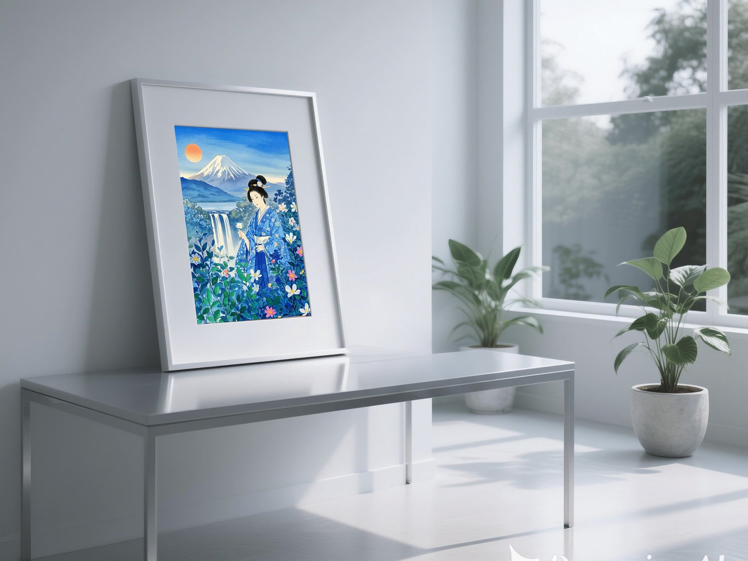 This beautiful illustration featuring Mount Fuji, a waterfall, a kimono-clad woman, and vibrant flowers is rich in Feng Shui symbolism. Each element carries positive energy that can enhance various areas of life.
