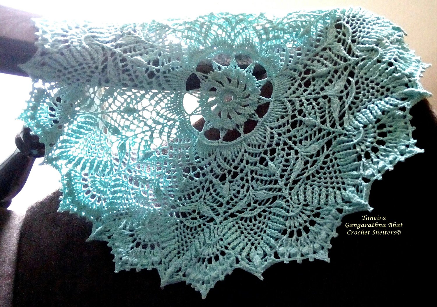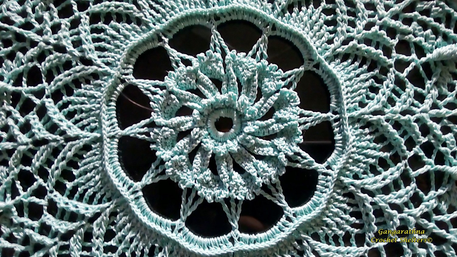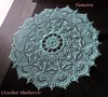 Pattern consists of 32 rounds and measures 18 inches, used around 450 yards of size 20 mercerised cotton thread with 1.75 mm steel hook.