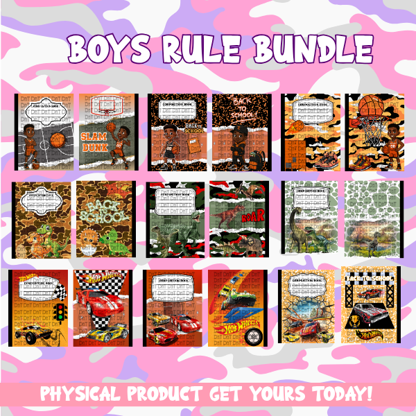 Fuel their imagination and school day confidence with our Boys Rule Composition Notebook Bundle – perfect for birthdays, party favors, school supplies, or just because your little guy deserves something cool and custom!