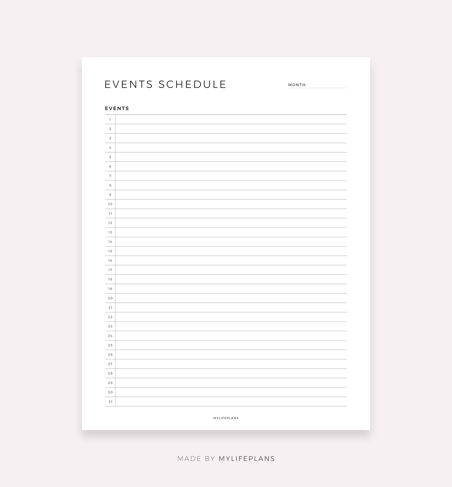 Monthly Events Schedule, Digital Template for Goodnotes, Notability, Ipad