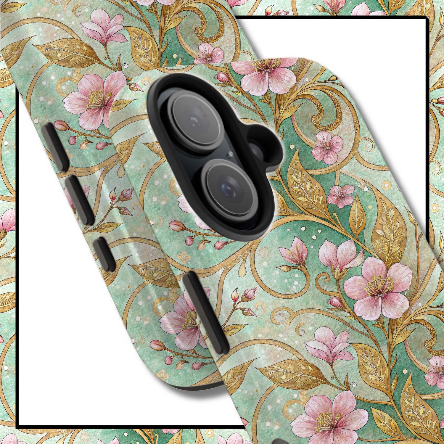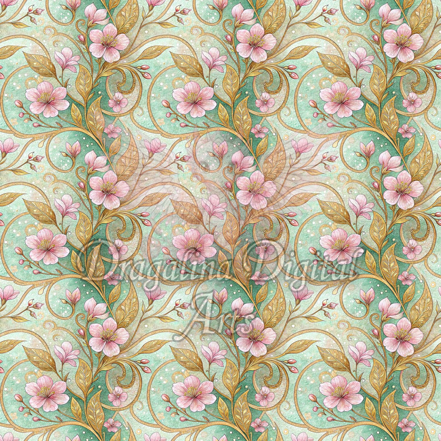 Mint & Gold Floral Vines Seamless Pattern
