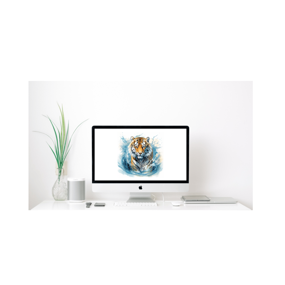 Tiger Running Through Water Watercolor - DESKTOP WALLPAPER