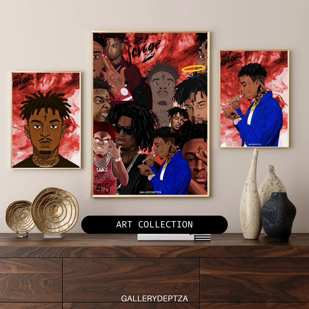 - Bundle of 3 unique designs featuring 21 Savage in animated, trippy styles