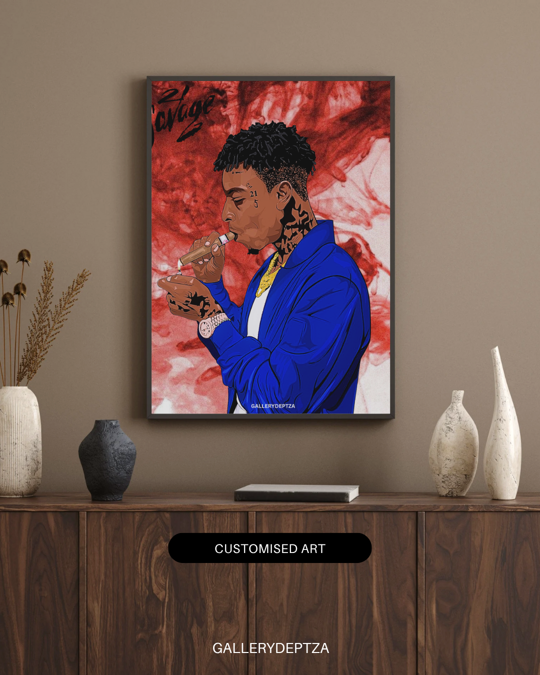 Elevate your wall art collection with this 21 Savage animated poster featuring a trippy, psychedelic background. Perfect for music lovers and fans of unique digital art, this item is available exclusively as a digital download — no physical product will be shipped.
