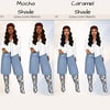 • Available in mocha and caramel skin tones