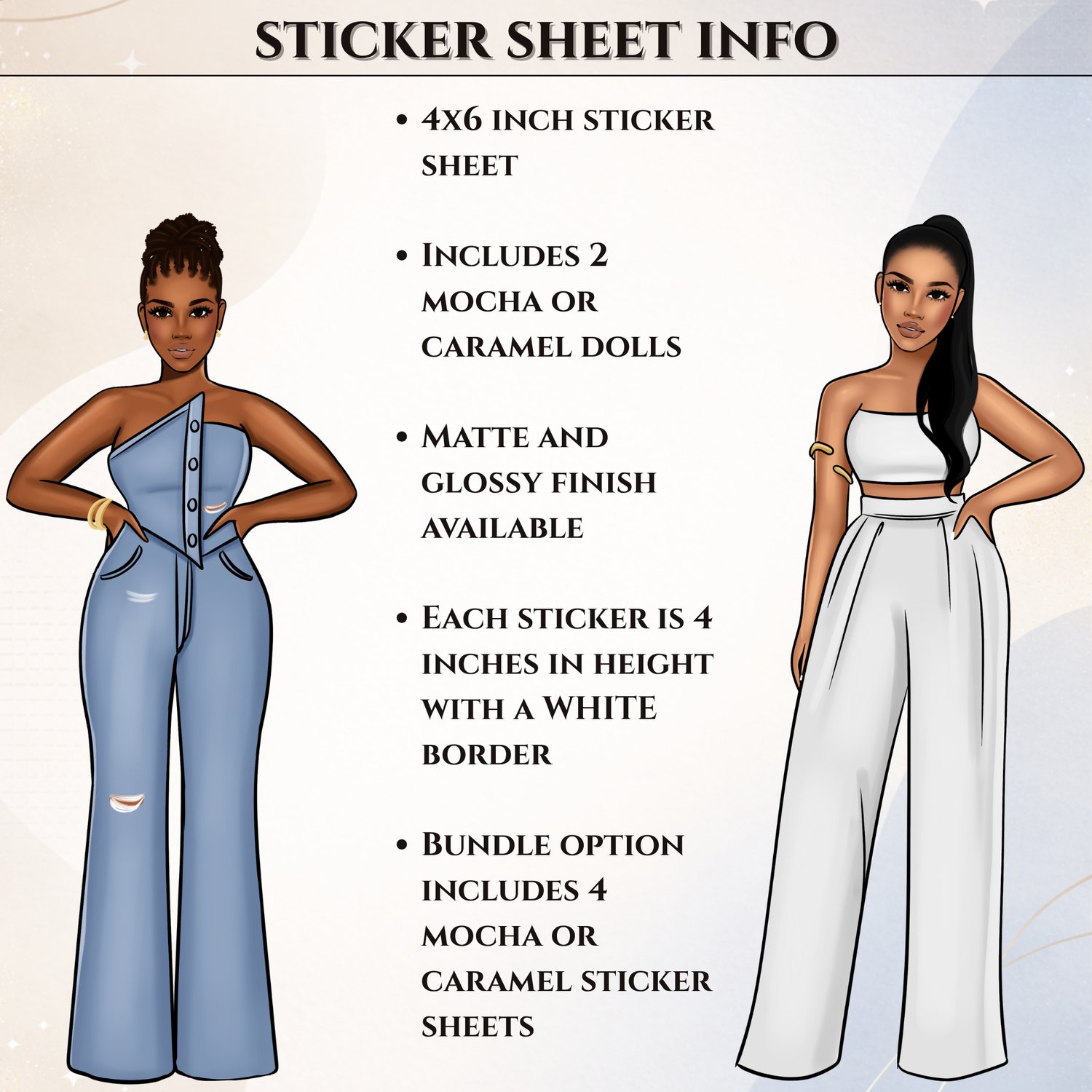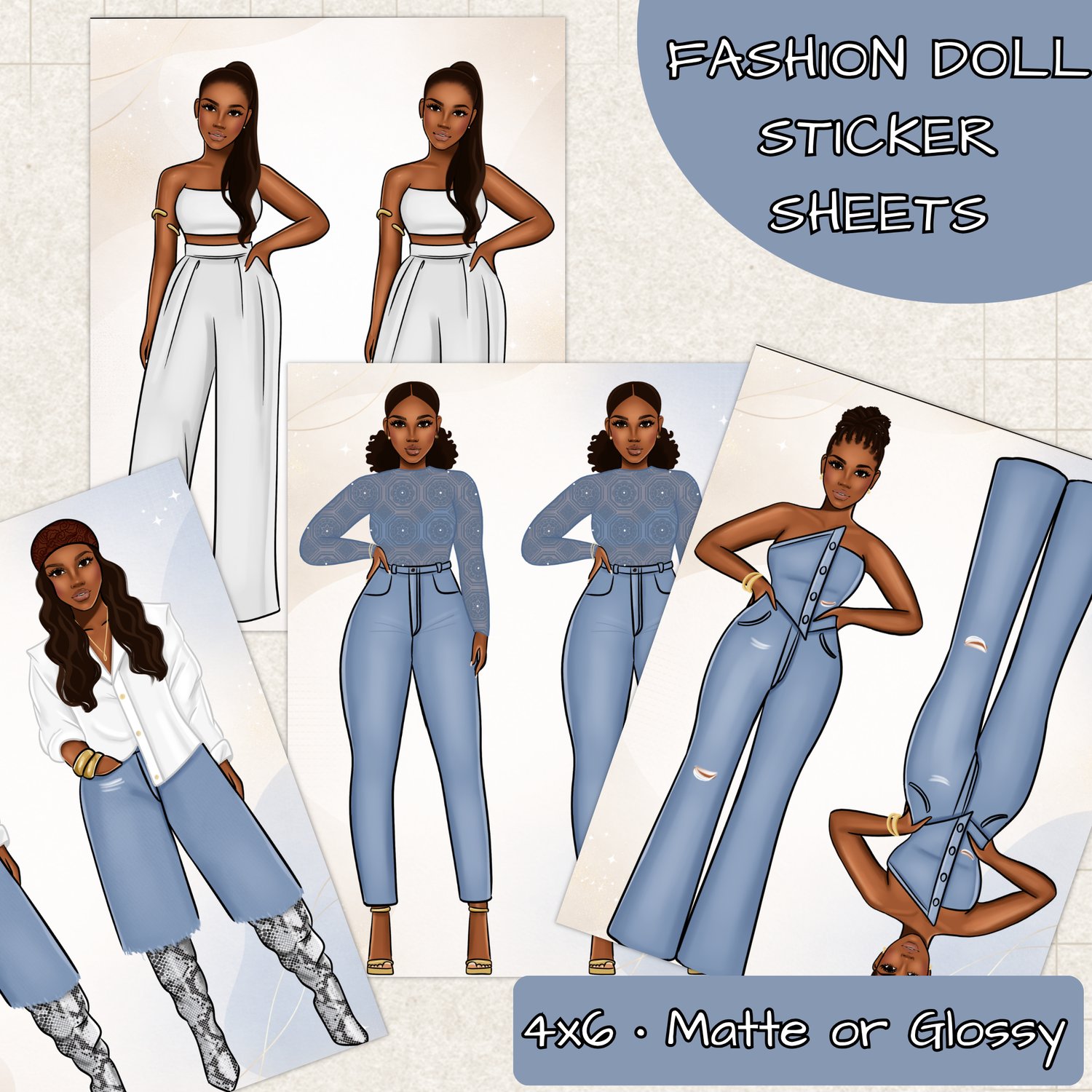 This Black Girl Doll sticker sheet features stylish illustrated Black women designed for planner lovers, journal girls, and stationery fans who love bold, beautiful representation. Available in both mocha and caramel shades, these stickers bring personality, confidence, and creativity to your everyday pages.