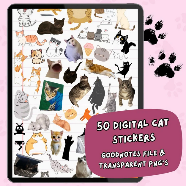 Digital Cat Stickers Bundle: 50 Adorable GoodNotes & PNG Stickers – Instant Download - Transparent PNG, Digital Planner, Digital Journal