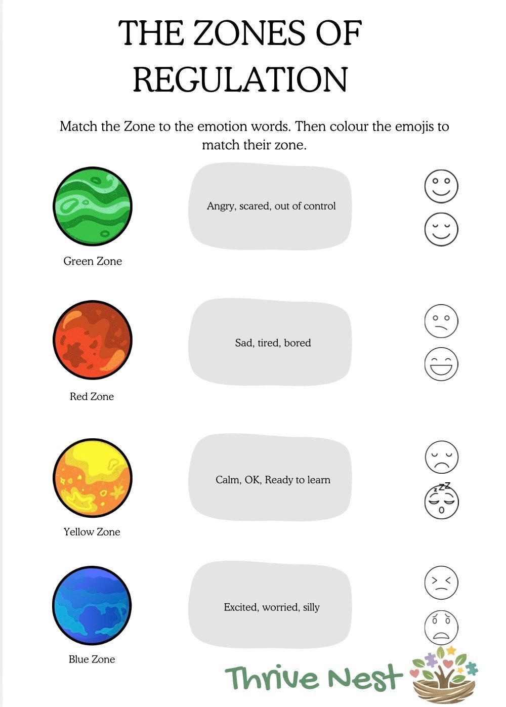 - Zones of Regulation colour matching and sorting