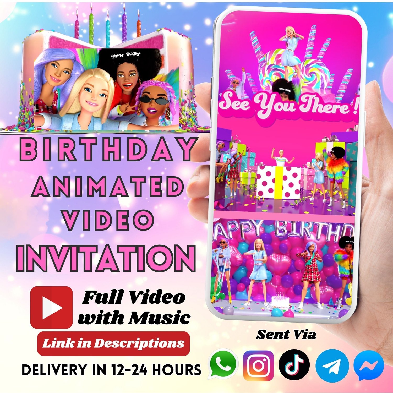 Invite your loved ones and your kid’s buddies to their Barbie birthday bash with this fun and cool animated Birthday Video invitation. It’s a breeze to share the invitation with everyone via WhatsApp, TikTok, Instagram, Messenger, telegram or any other social media platforms.