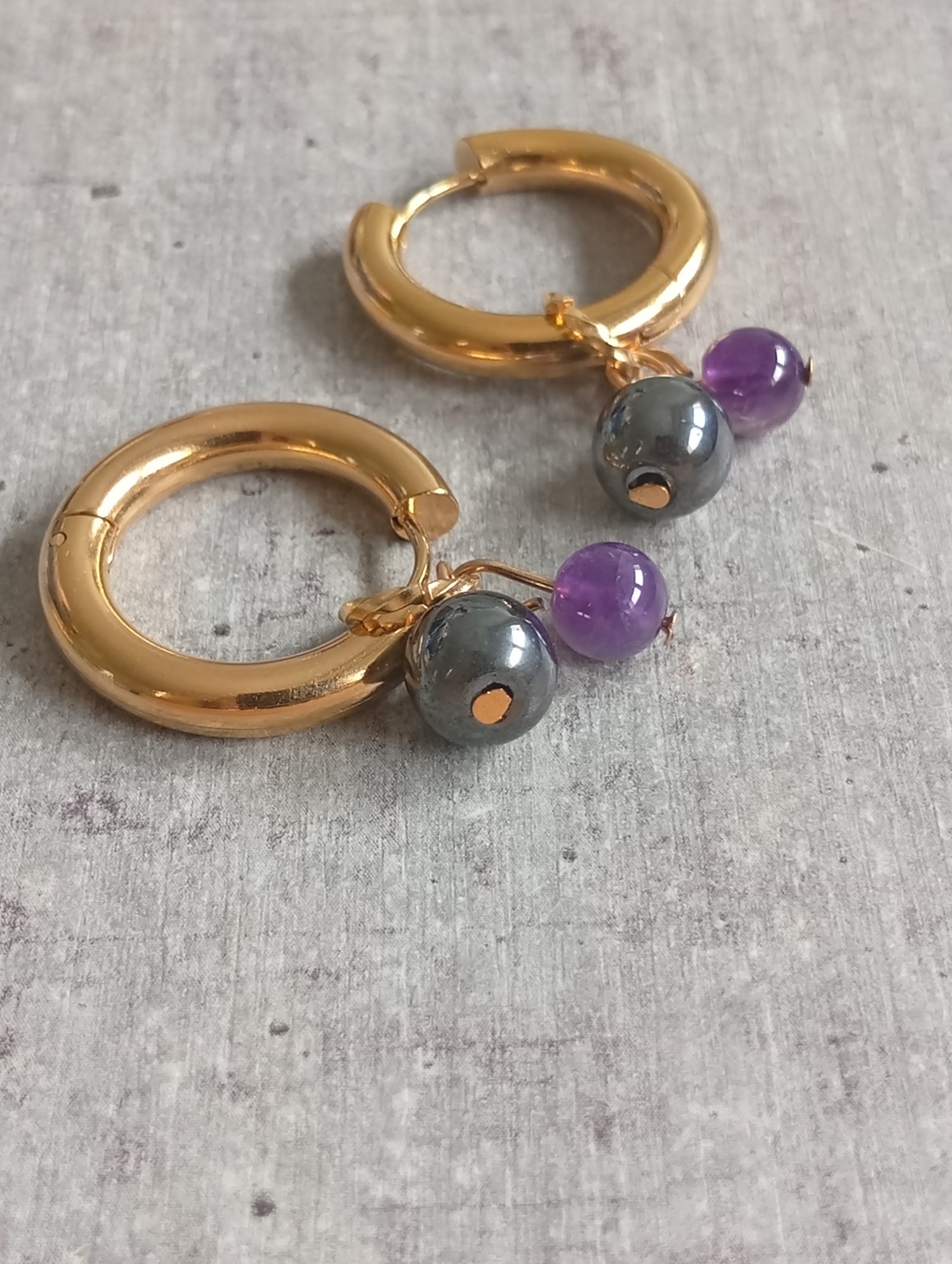 • Perles : Améthyste 6 mm et Hématite 8 mm