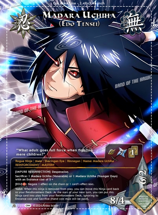 n021 - Madara Uchiha (Edo Tensei) Promo Ninja card from our Obito & Madara card set for Naruto CCG.