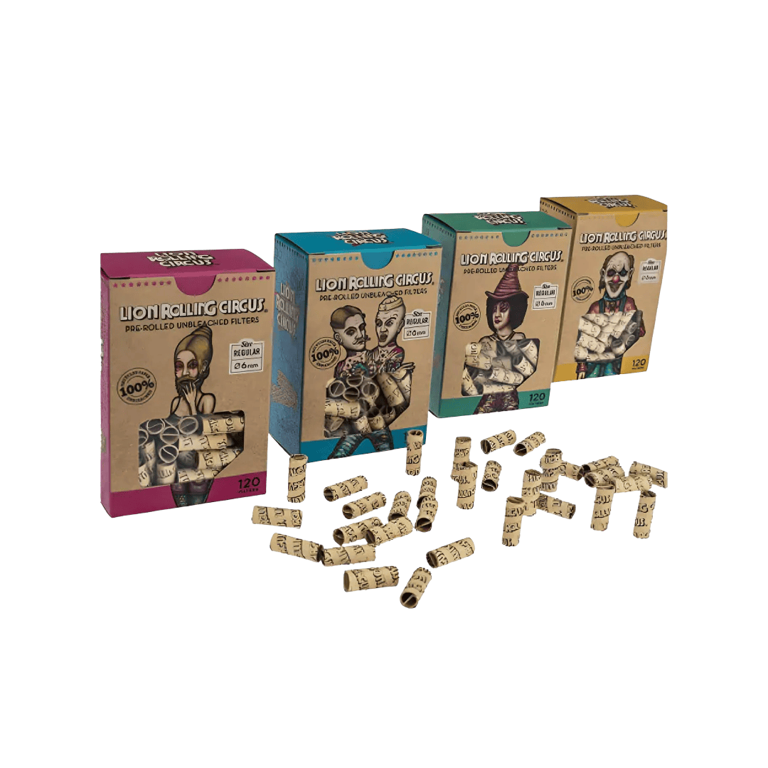 A marca Lion Rolling Circus é famosa por seu estilo irreverente e único, refletido nas suas embalagens e nos próprios produtos. As piteiras deste pack não são apenas funcionais, mas também trazem um toque de personalidade que diferencia sua experiência de fumar.